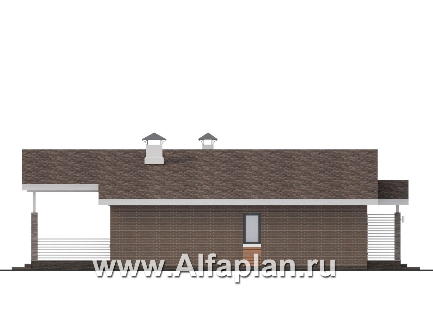 «Симплекс» - проект одноэтажного дома из газобетона, с террасой, с двускатной крышей