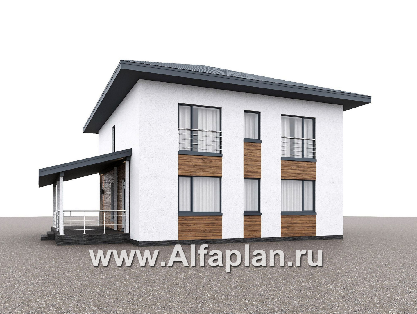 1054A-S «Чистая линия» - проект дома, 2 этажа, мастер спальня, с террасой сбоку, в современном стиле