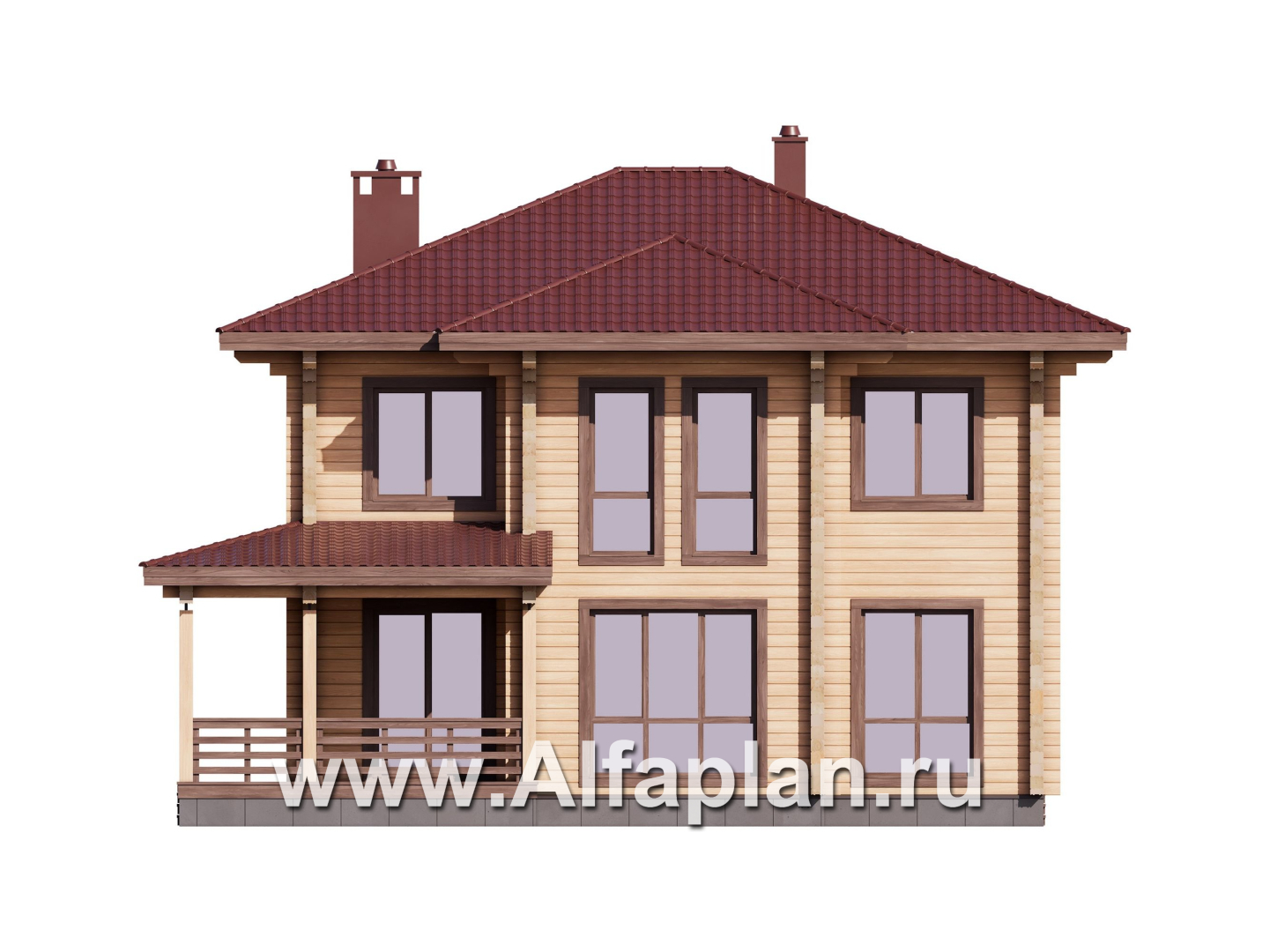 G200-S Проект двухэтажного дома из клееного бруса, планировка со спальней на 1 эт, с террасой