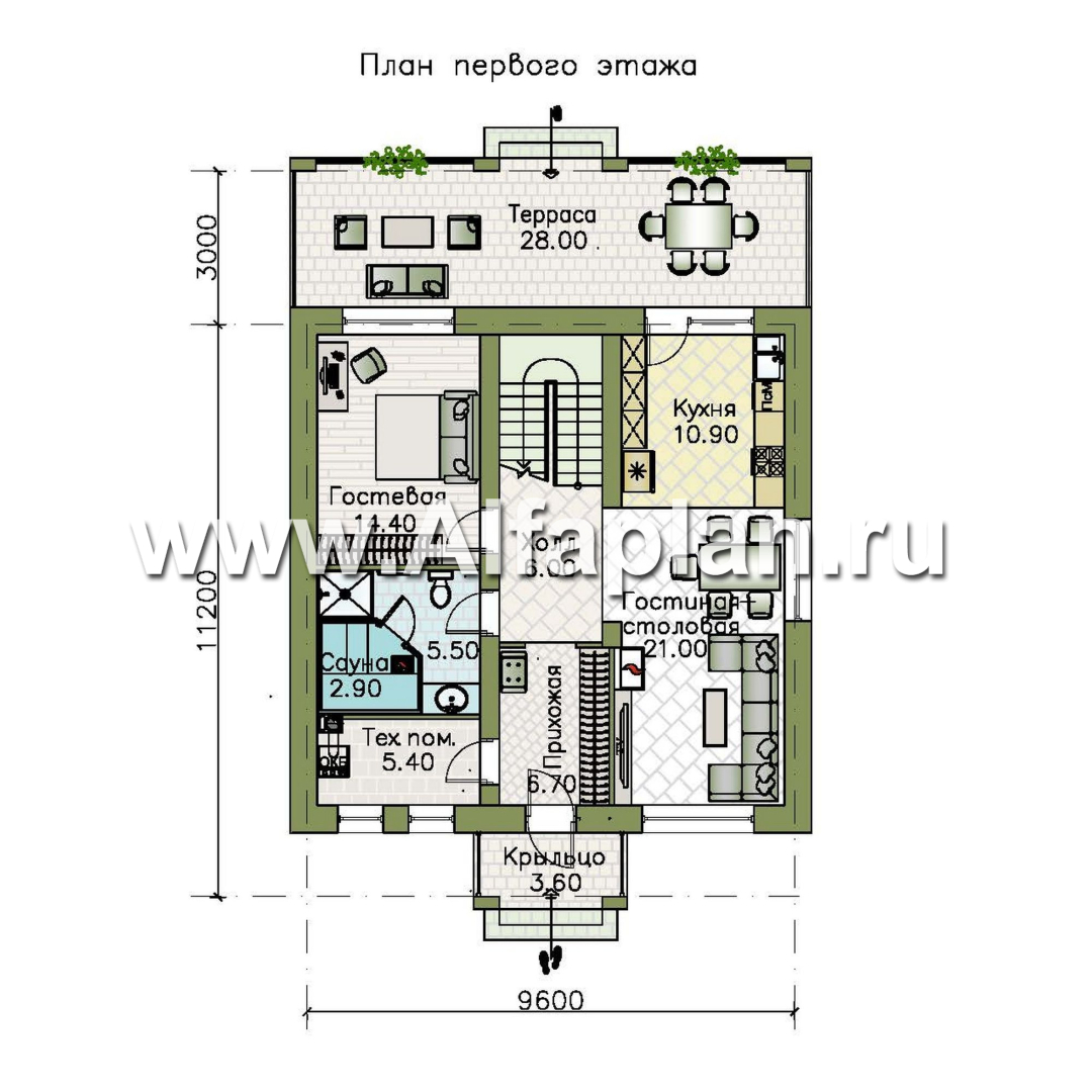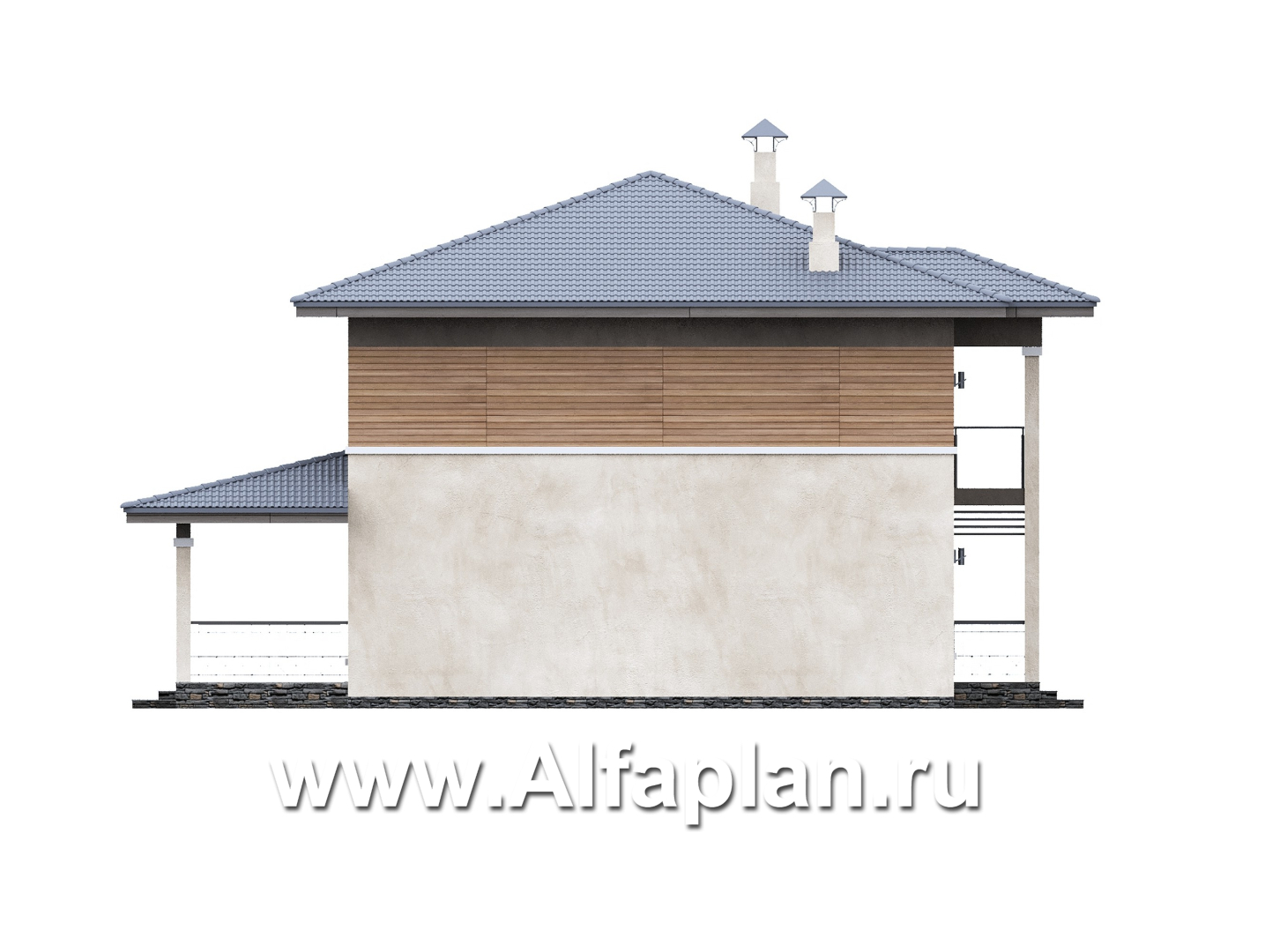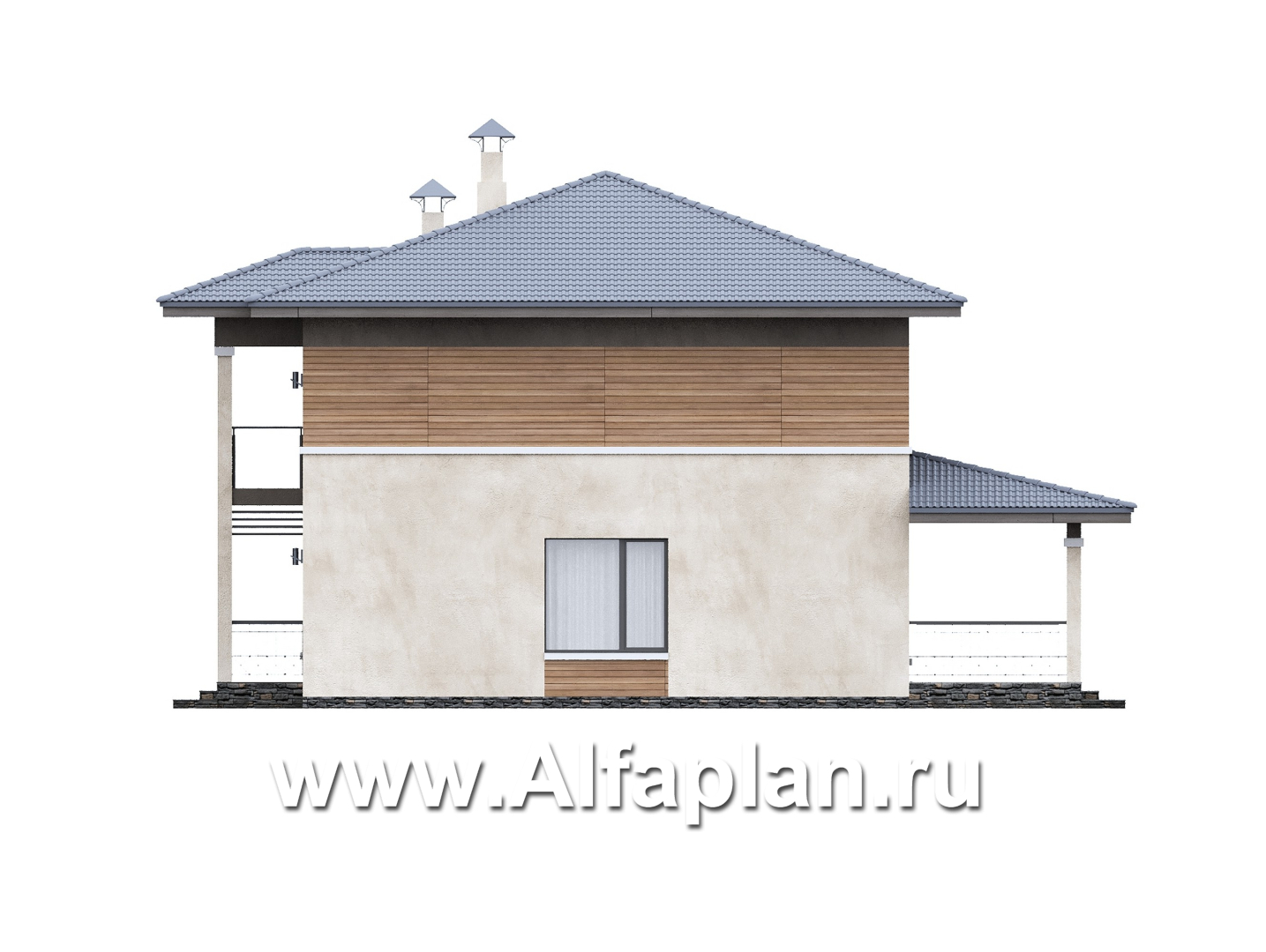 «Невада» - проект двухэтажного дома из газобетона, с террасой, в стиле Райта