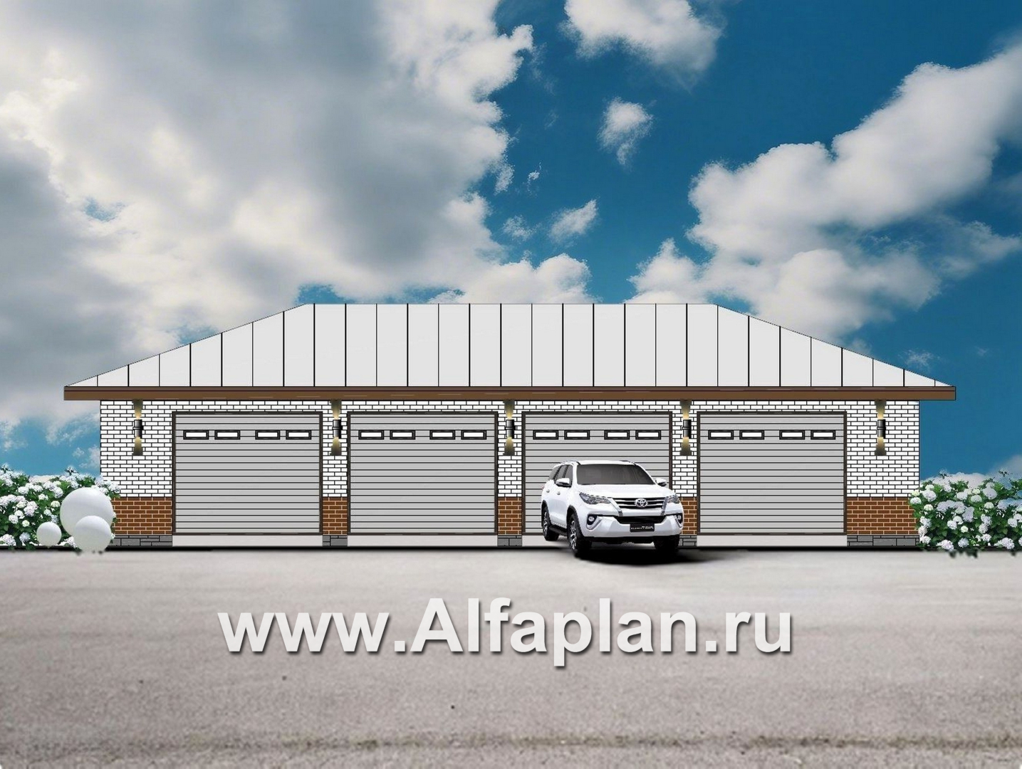 Проект гаража на 4 автомобиля, без столбов внутри - технические характеристики