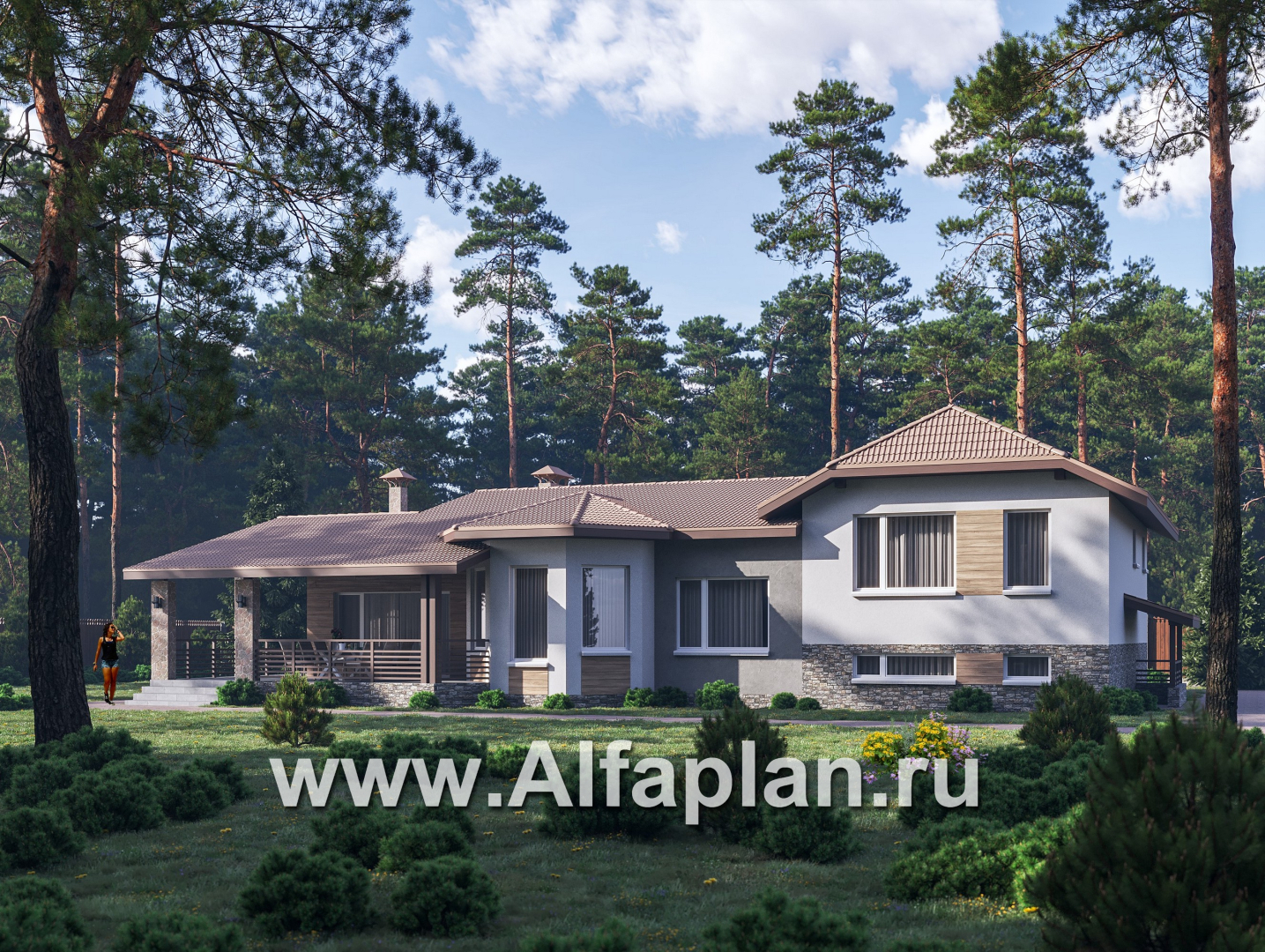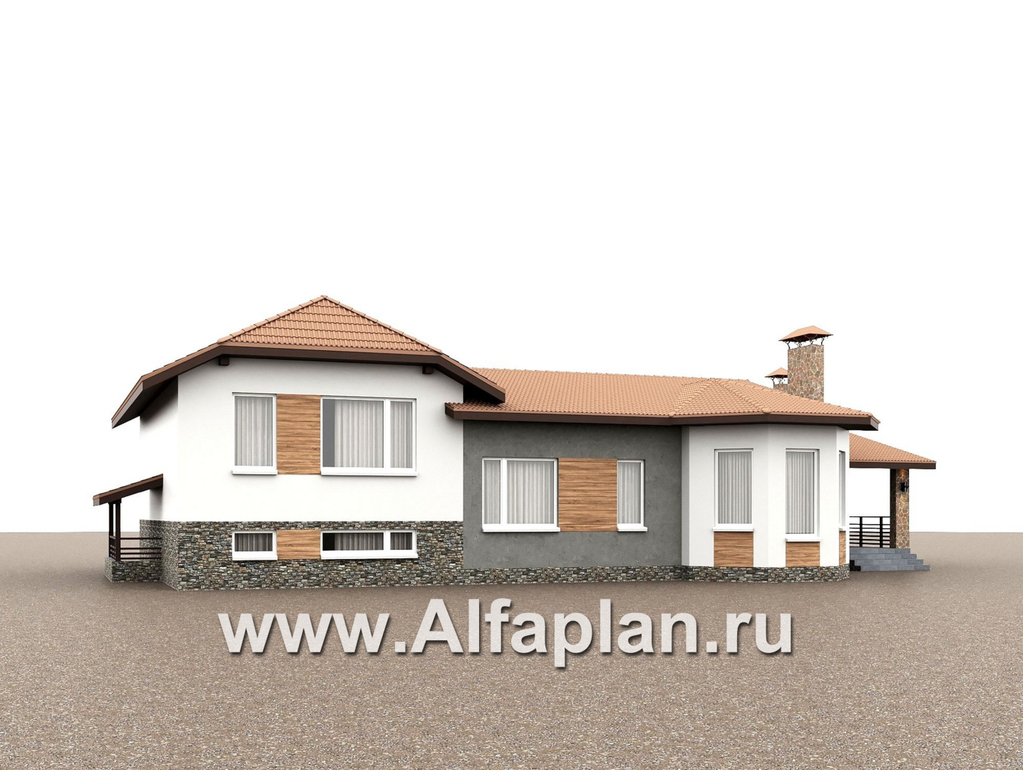 730B-S «Ной и команда» - проект полутораэтажного коттеджа, планировка мастер спальня, с эркером и с террасой, с сауной в цоколе