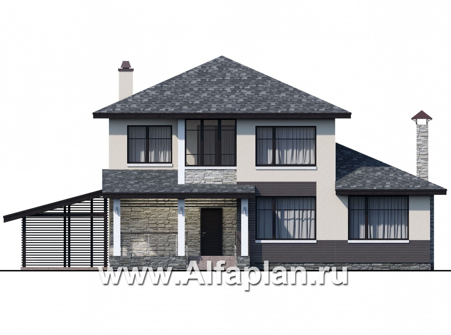 940B-S «Одер» - проект двухэтажного дома из газобетона,с террасой и с навесом на 1 авто, в современном стиле