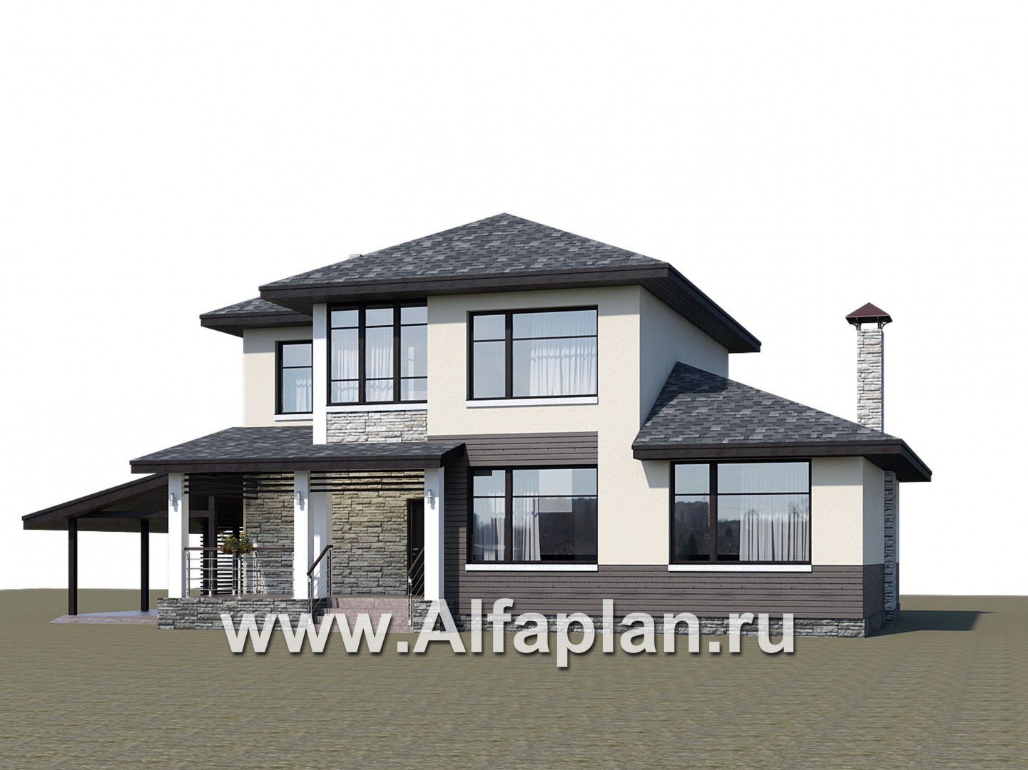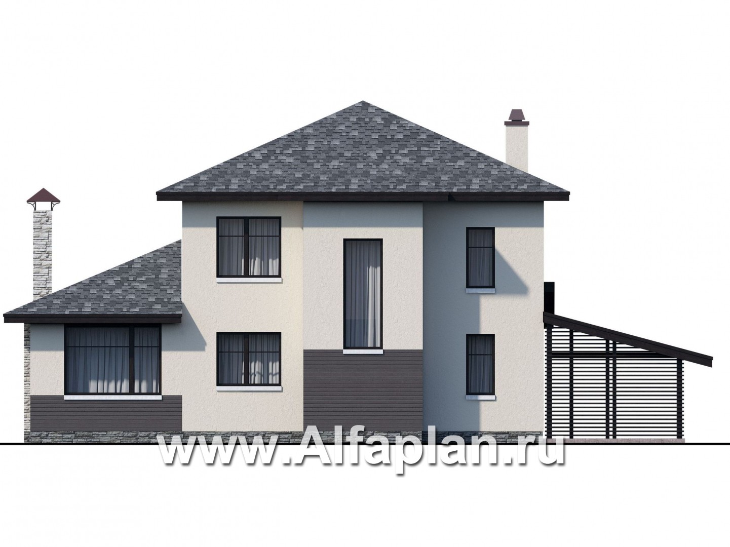 «Одер» - проект двухэтажного дома из газобетона,с террасой и с навесом на 1 авто, в современном стиле
