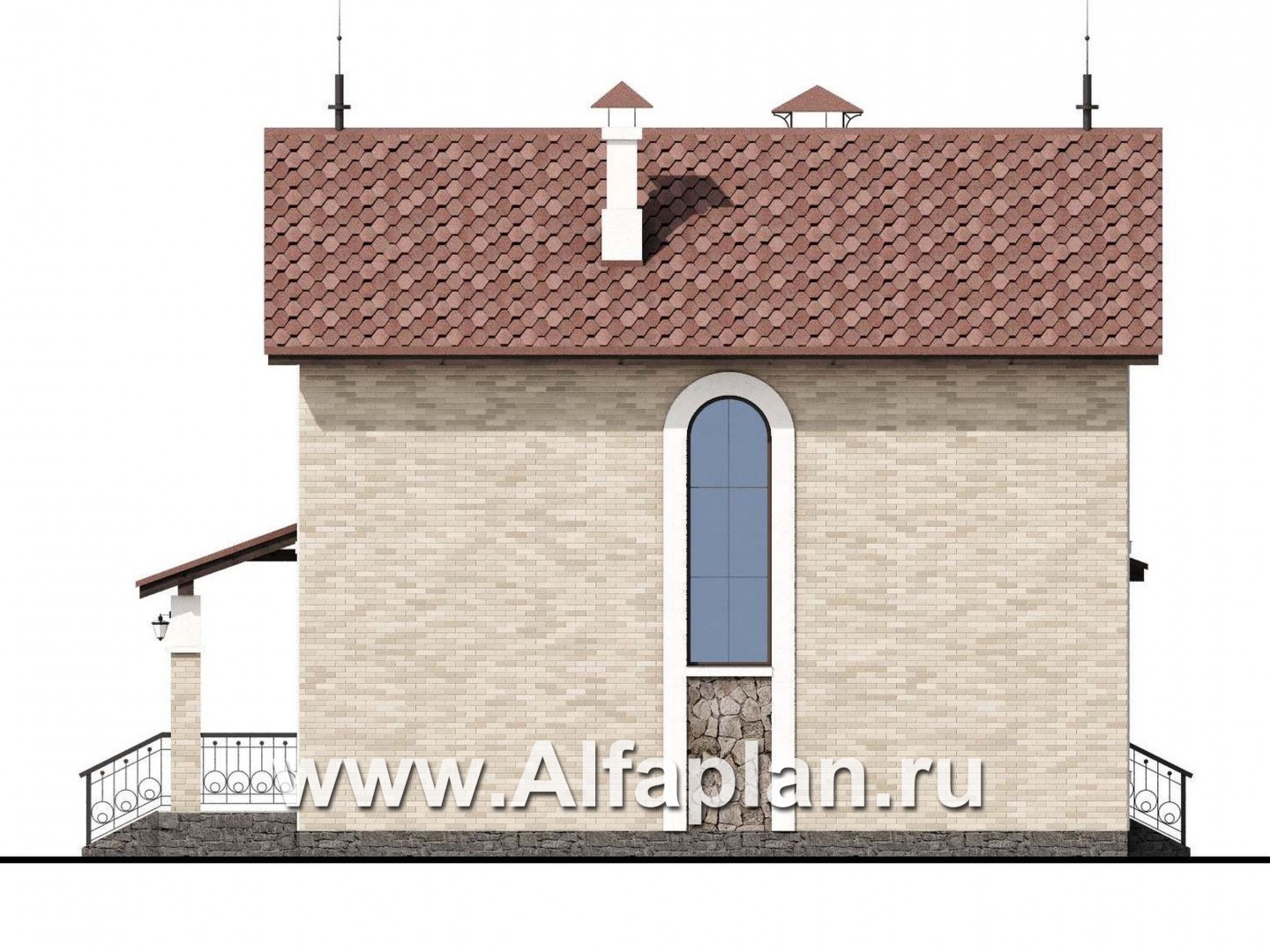 Из кухни попадаем на крытую террасу — комфортное место для отдыха на свежем воздухе. На первом этаже есть 8-метровая прихожая с гардеробной, техническое помещение, санузел и 14-метровая гостевая.