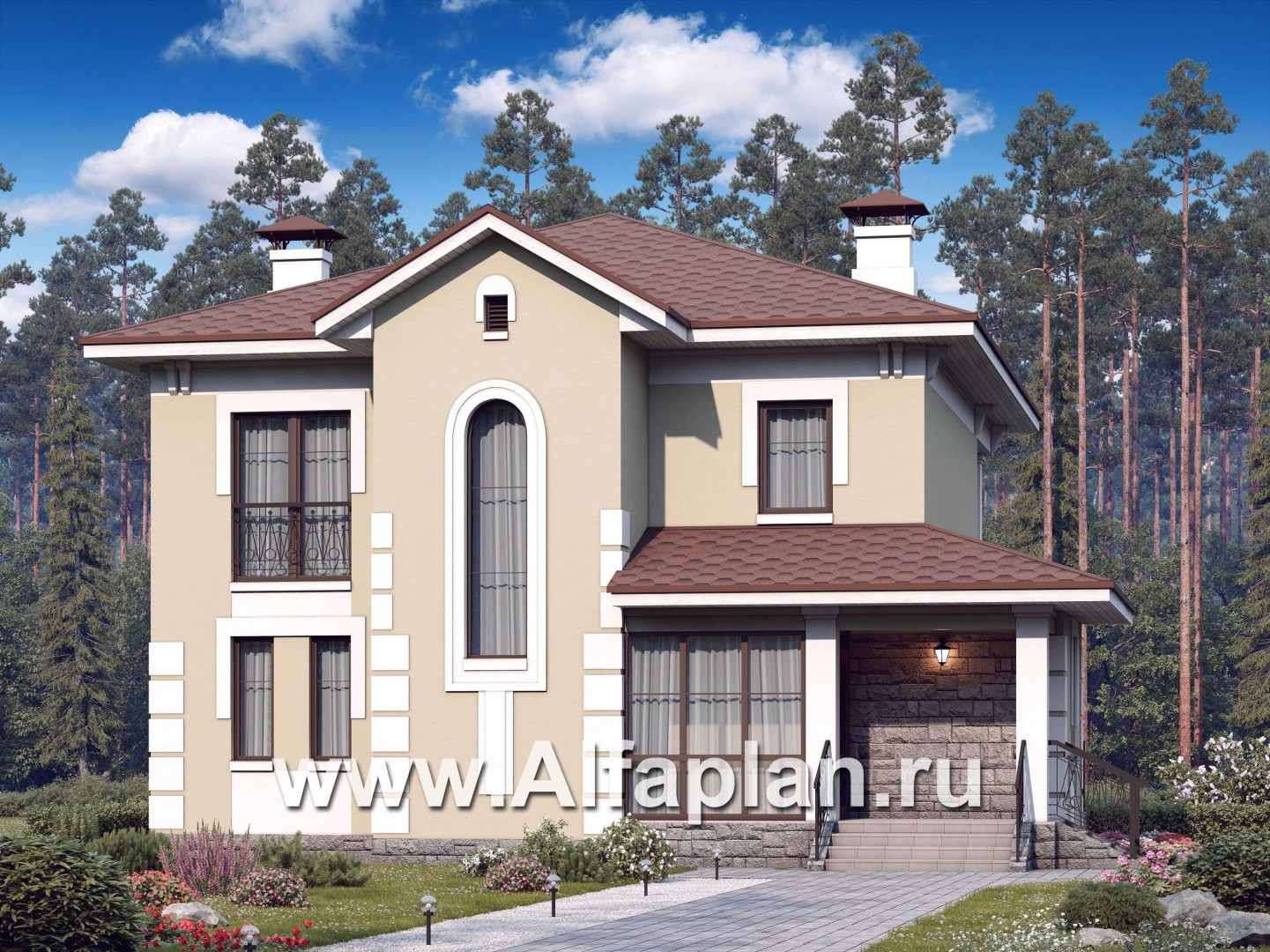 «Кваренги» - проект двухэтажного дома, с сауной, с террасой и просторной лоджией