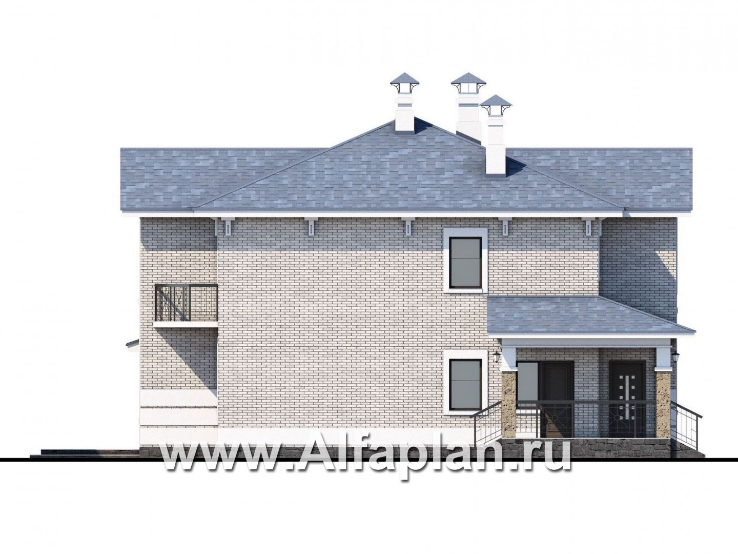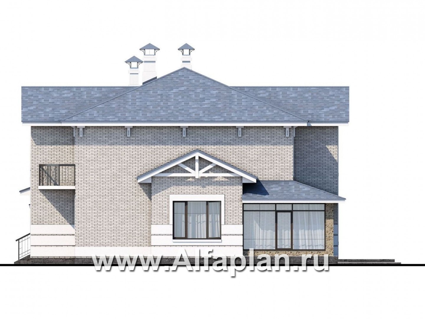 318A-S «Аутентик» - проект двухэтажного дома, с двусветным холлом и верандой, арочное окно, в стиле эклектика