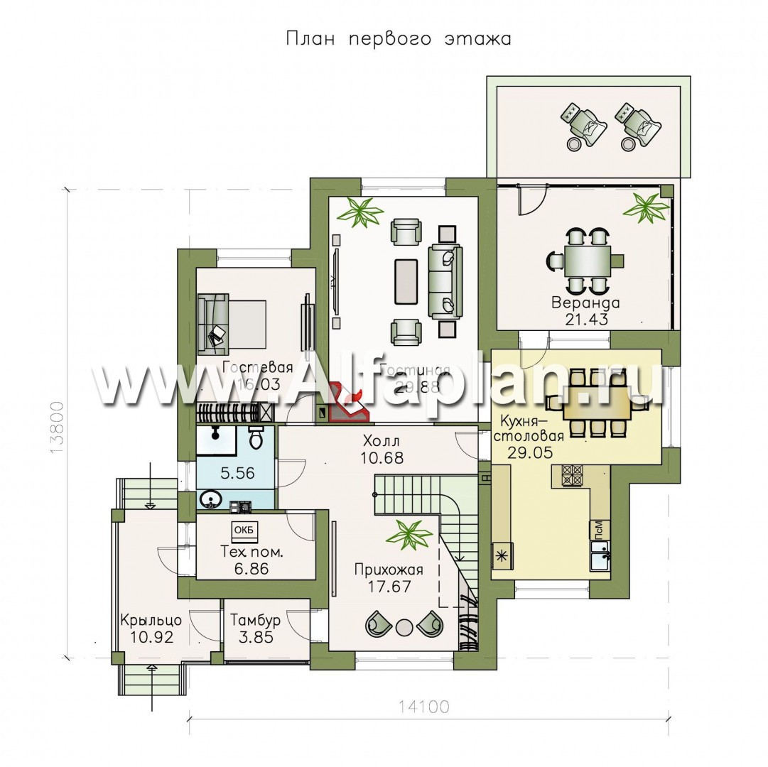 «Аутентик» - проект двухэтажного дома, с двусветным холлом и верандой, арочное окно, в стиле эклектика - технические характеристики