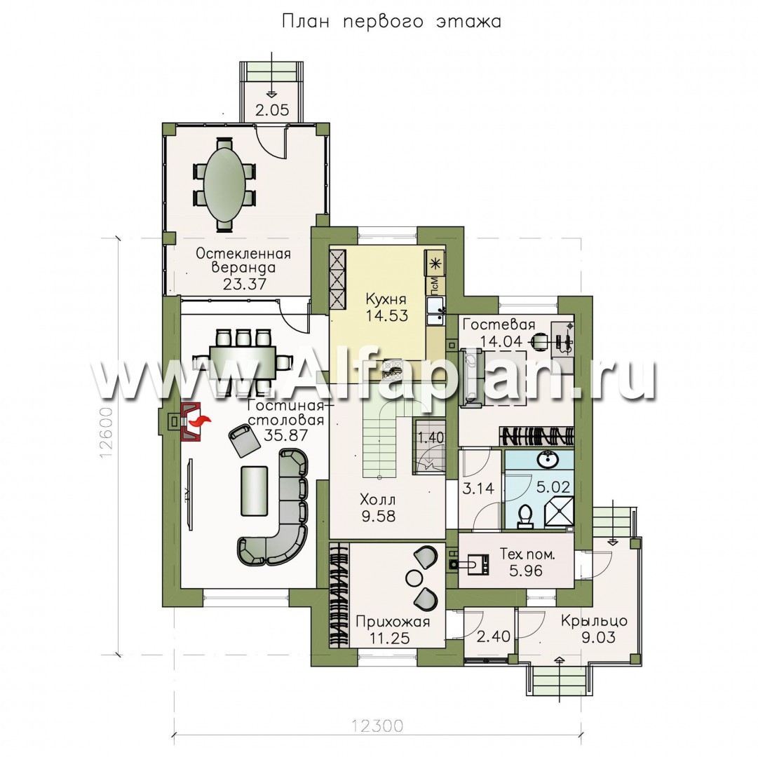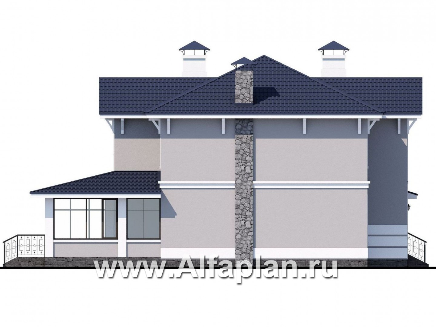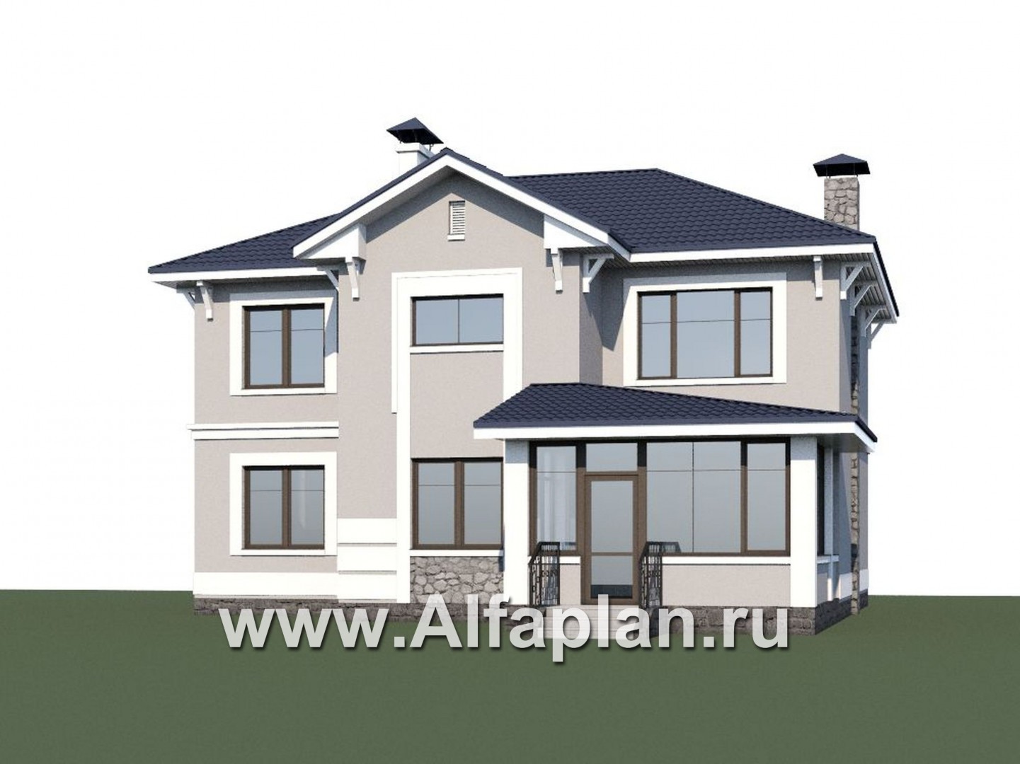 540A-S «Семь ветров» - проект двухэтажного дома, лестница в центре, с террасой, в стиле эклектика