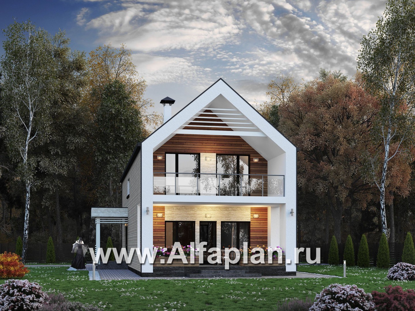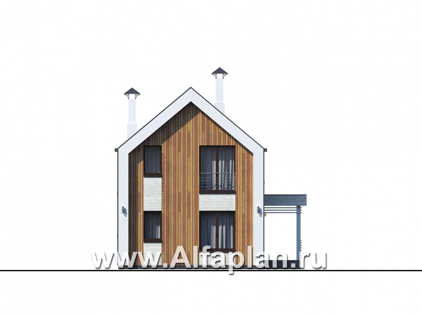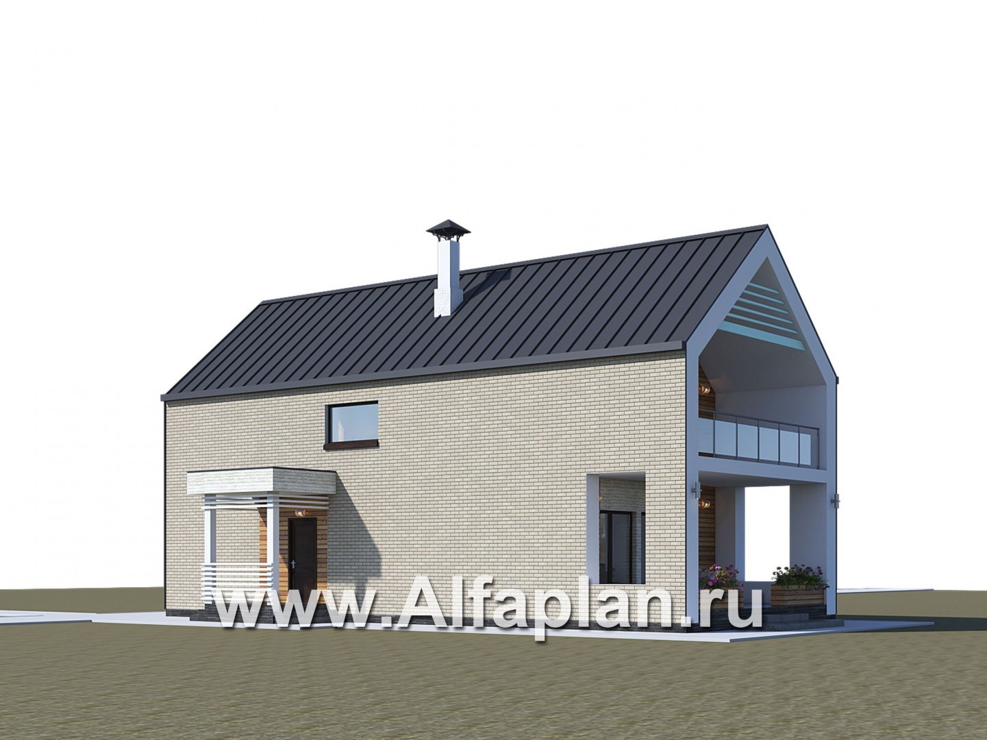 «Барн» - проект дома с мансардой, современный стиль барнхаус, с сауной, с террасой к дому и с балконом