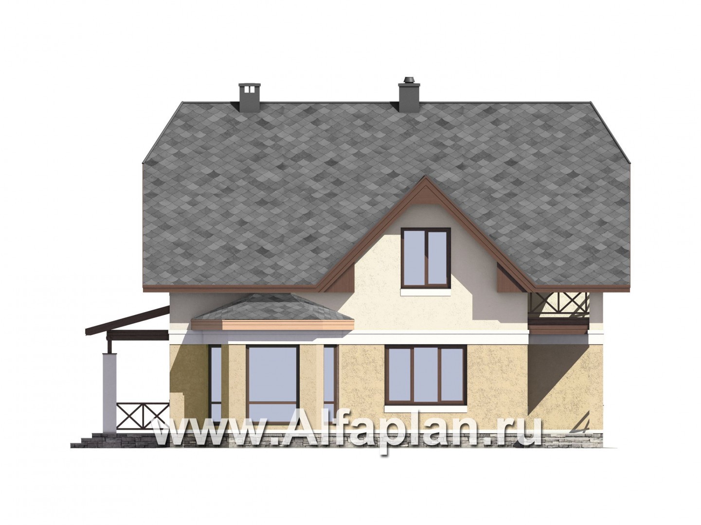 G51c-S Проект дома с мансардой, планировка с террасой и кабинетом на 1 эт, с эркером и с гаражом на 1 авто