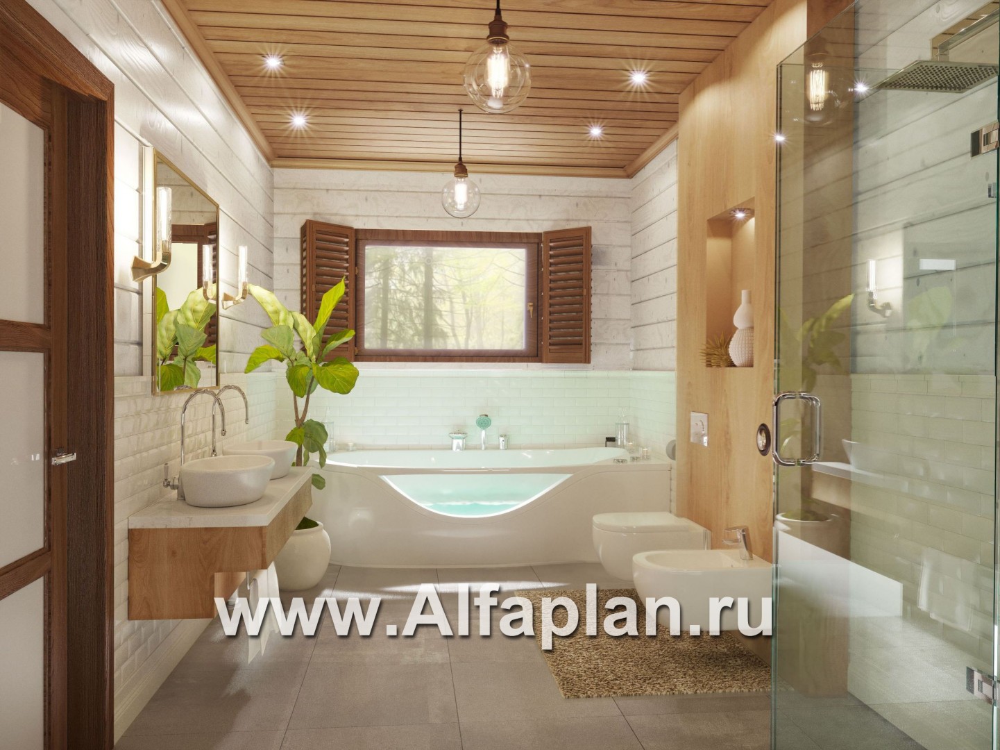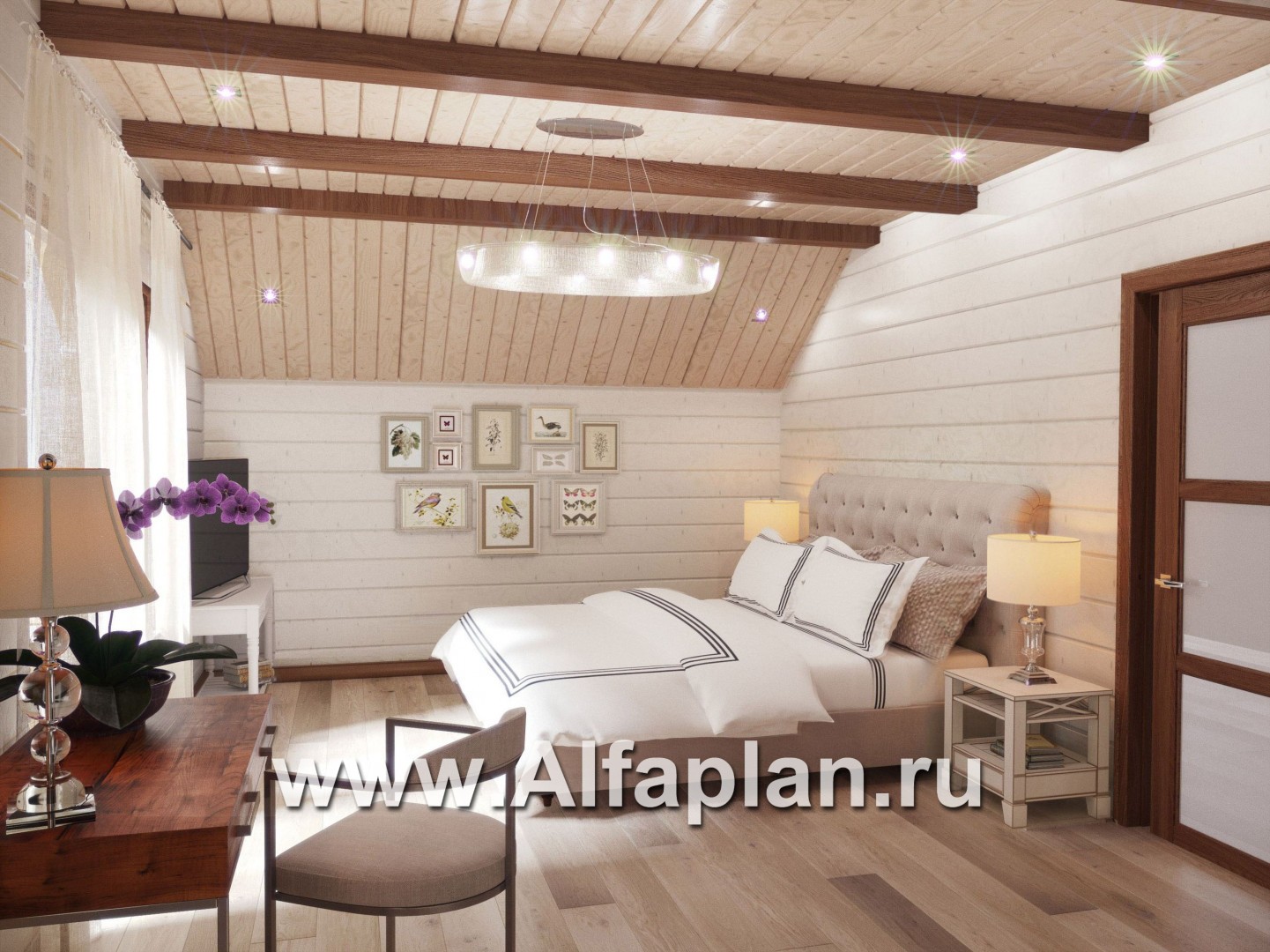 G111b-S Проект дома с мансардой, из бруса, планировка с террасой и с гостевой квартирой на 1 эт
